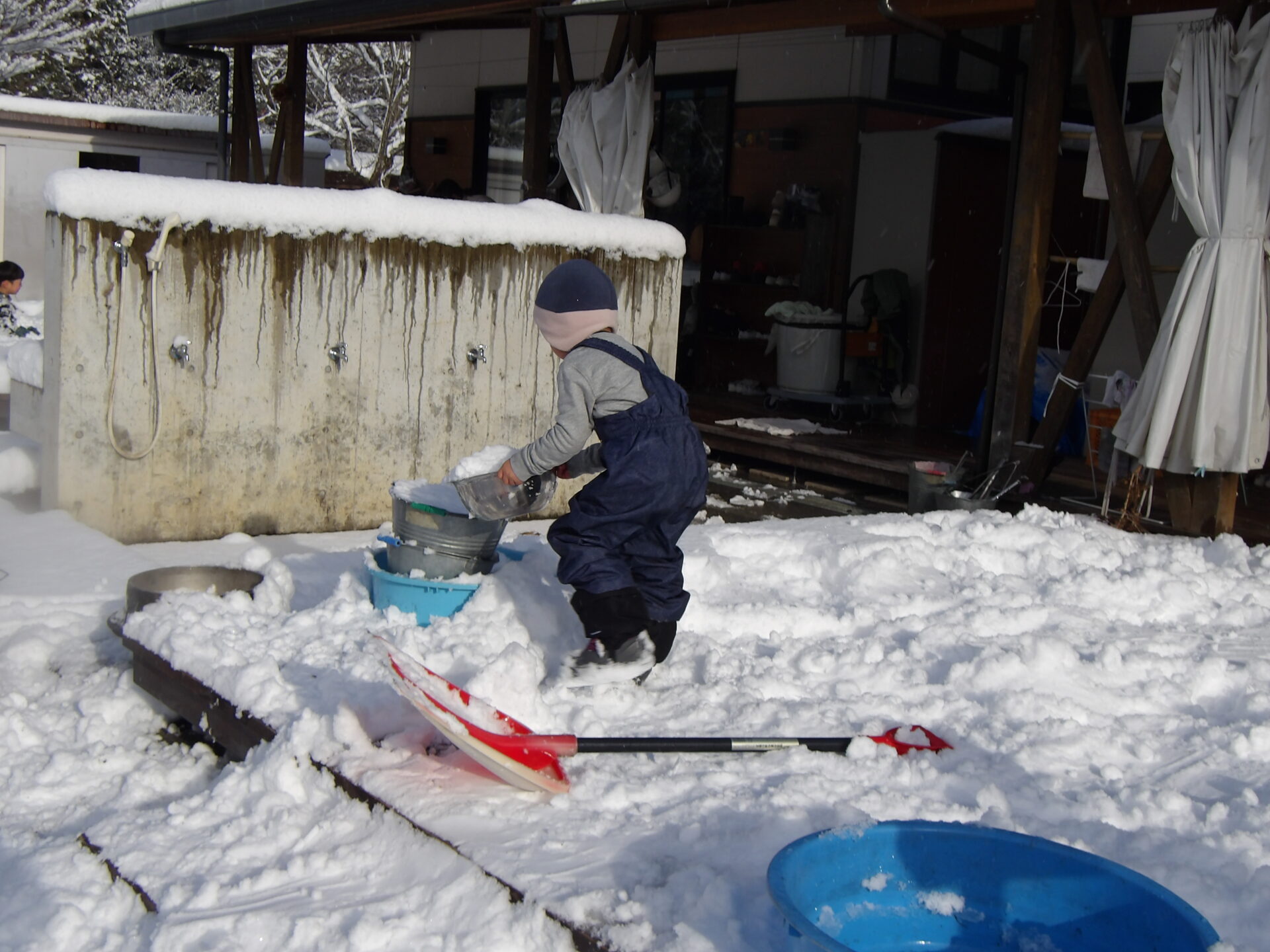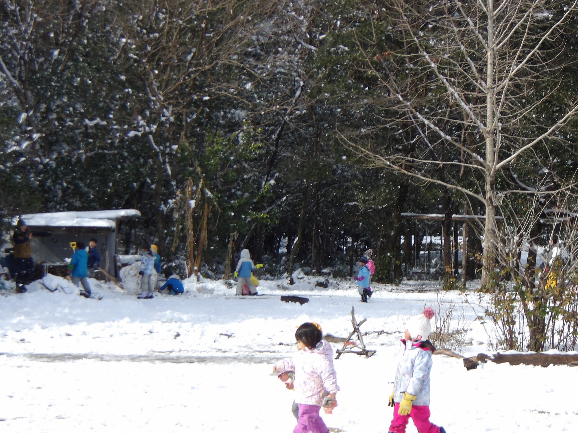 あちらの奥では大きい組の子達が大きな雪だるまを作ったり、かまくらに挑戦していたり・・・